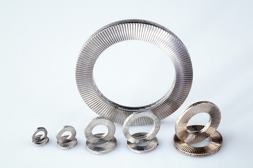 雙疊自鎖(鎖緊)墊圈DIN25201是由兩片內齒面咬合組成,外側帶有放射狀的斜細面齒紋,內側為大角度斜齒面。斜齒面的角度大于螺紋角度,當連接件受到振動,螺栓連接會隨著持續振動發生松動趨勢,僅允許墊圈內側的斜齒面會產生相對錯動,產生抬升張力,從而達到完全的防松效果。雙疊自鎖(鎖緊)墊圈利用幾何原理,安全鎖緊處于強烈振動的螺栓連接。